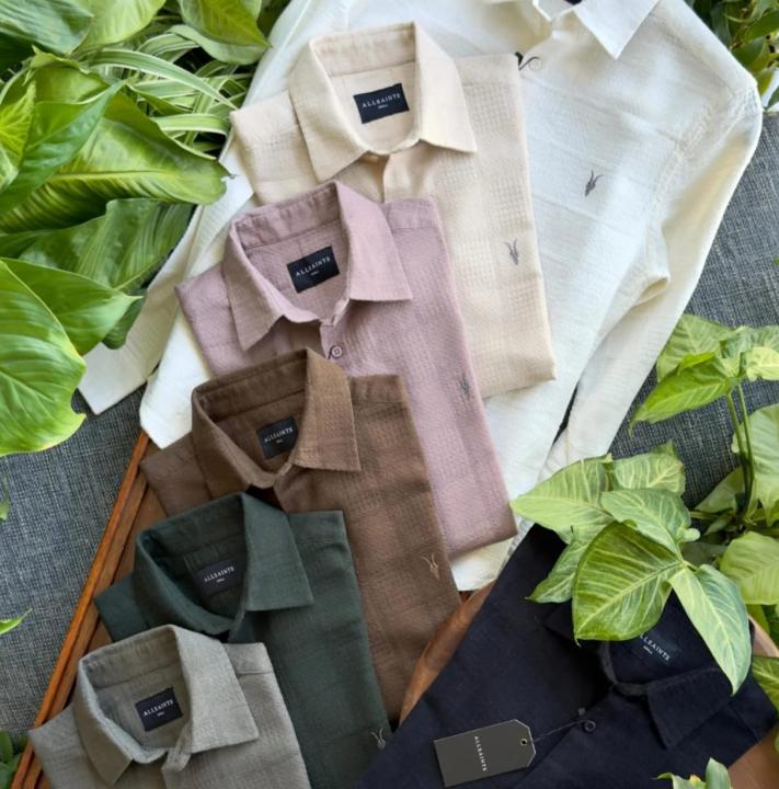 ALL_SAINTS CHEST LOGO FULL SLEEVES IMPORTED SHIRT WHITE LIGHT GREEN