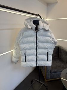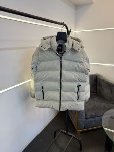 Hugoboss imported puffer jacket with hood and brand button white