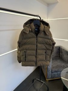 Hugoboss imported puffer jacket with hood and brand button brown